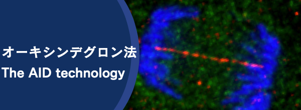 オーキシンはIAA(インドール酢酸)やNAA(ナフタレン酢酸)などの化合物の総称を指し、植物細胞中でAUX/IAAという一群の転写抑制因子を分解誘導します。その際に、必要なユビキチンリガーゼSCF-TIR1複合体はTIR1サブユニットにオーキシンが結合することにより活性化されます。TIR1以外のSCFサブユニットが真核生物全てに保存されていることに注目し、TIR1を酵母や哺乳類細胞に発現させることで、オーキシン依存分解系を導入することができます。この細胞においては、標的タンパク質にAUX/IAA由来の分解タグ(AIDデグロン)を付加することにより、オーキシン存在下に分解を誘導することが可能になります。